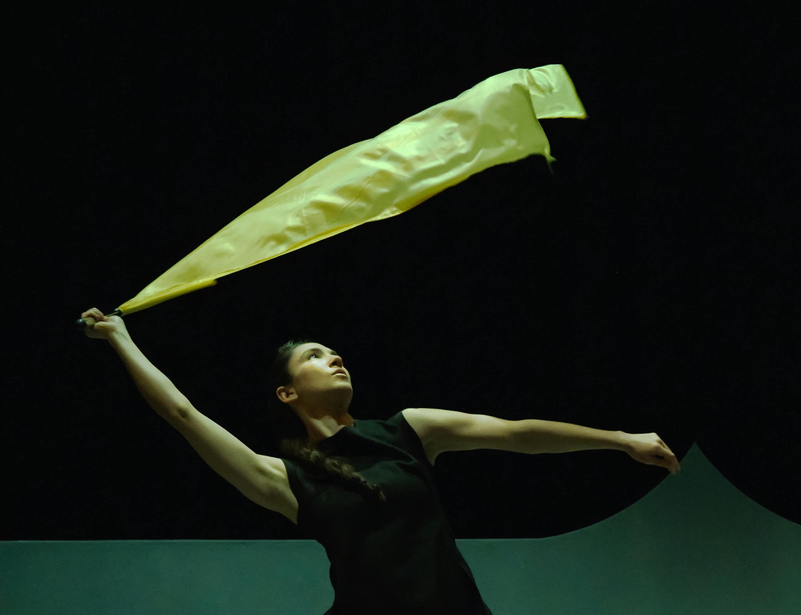 In ancient times, chimerical beings and oneiric figures used to appear on coats of arms and shields to tell stories of conflicts fought on battlefields. The gaudy colours and the fantastical creatures of heraldic symbols hint at political tensions, expressions of belonging, dominance and power. ARA! ARA! represents a growing power symbolised by an unusual animal – not a majestic and fearsome raptor, but a cheerful and lively bird of exotic character: a parrot. The second part of a diptych started with AeReA (winner of the first Premio Hermès Danza Triennale Milano), ARA! ARA! draws on the folkloristic tradition of flag waving. For the young artists Ginevra Panzetti and Enrico Ticconi, the image of the flag becomes vehicle of a profound reflection on the political nature of personal and collective relationships.