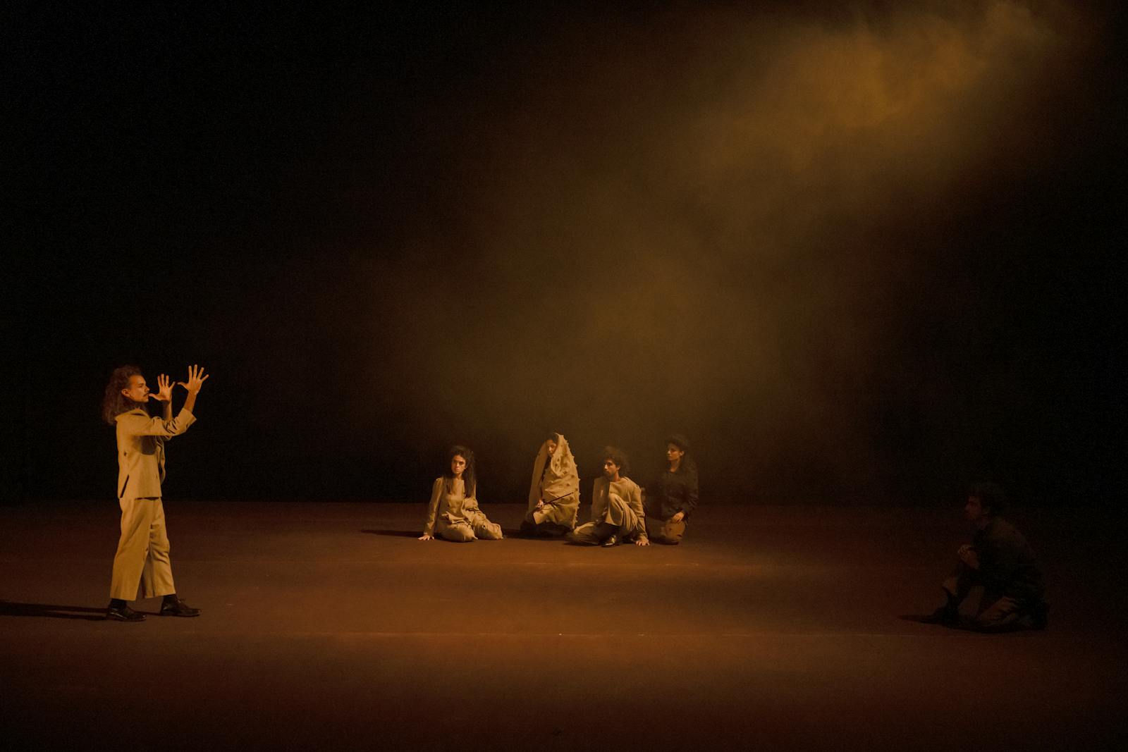 In Sahara, Claudia Castellucci’s choreographic and philosophical research grapples with the dimension of the desert, where the extreme lack of materials and relationships pushes dance to consider only what one has: oneself, as the only—first and last—instrument. The empty desert forces a radical visual relationship with one’s shadow, which, perpetually projected, cannot be ignored. Barely tolerated, it forces one to seek the company of the only things that can be found in total solitude: the products of the mind. These are the subjects of the dance, which asserts its very essence in Sahara.