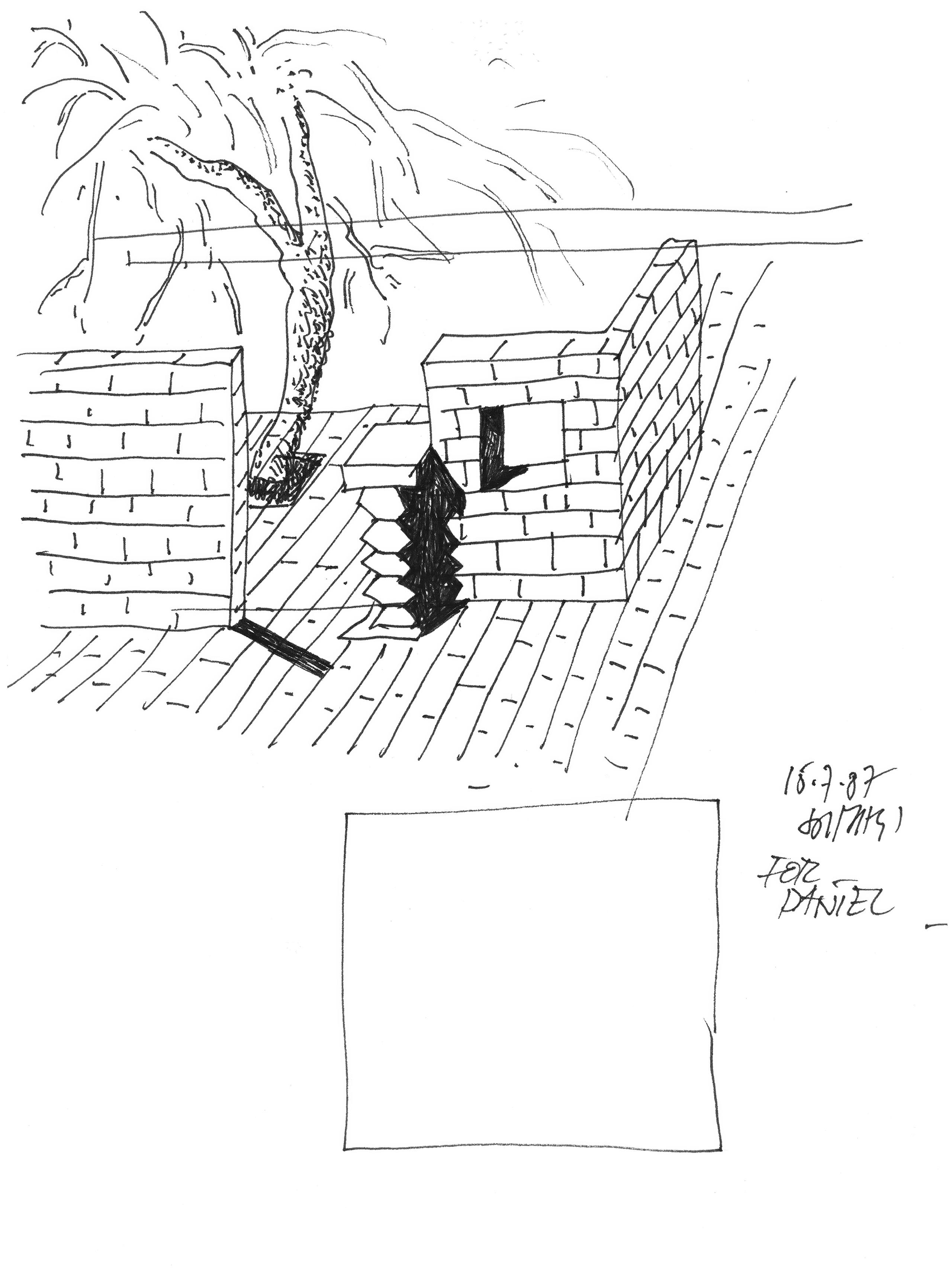 The new chapter in the series of exhibitions dedicated to the figure of Ettore Sottsass explores the dimension of architecture through drawing. It brings together drawings and sketches by the great architect and designer related to the themes of architecture, landscape and ruins, which go to make up a large-scale visual narrative. In order to bring visitors closer to Sottsass's thinking on architecture, a number of drawings from his post-Memphis period and a 1992 text titled Ruins have been privileged. Excerpts from this text accompany enlargements of the drawings on the wall, along with other reflections that bring out his desire to privilege in design “the part you inhabit over the part you see.”