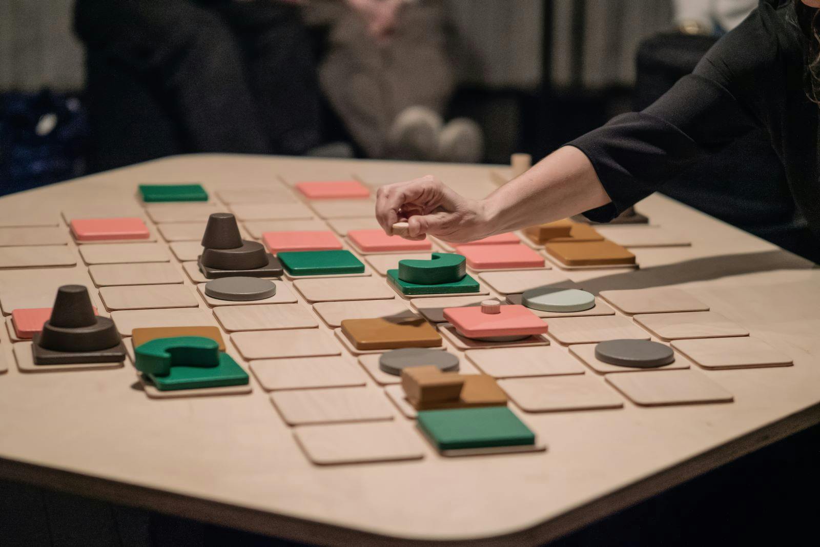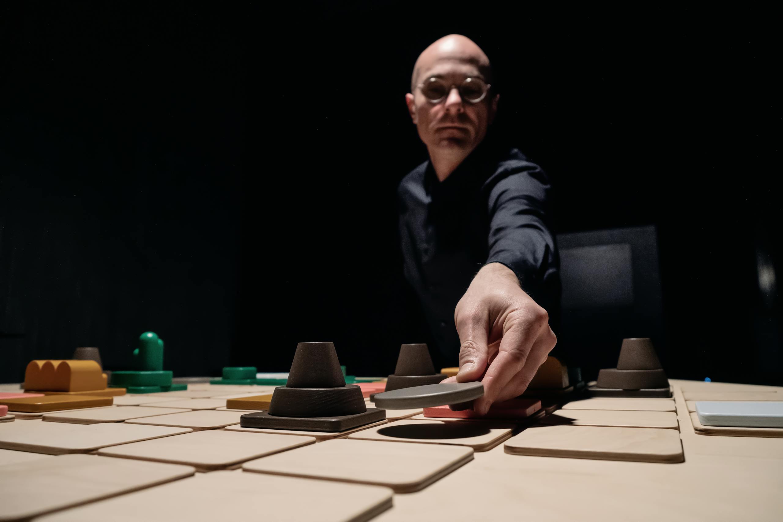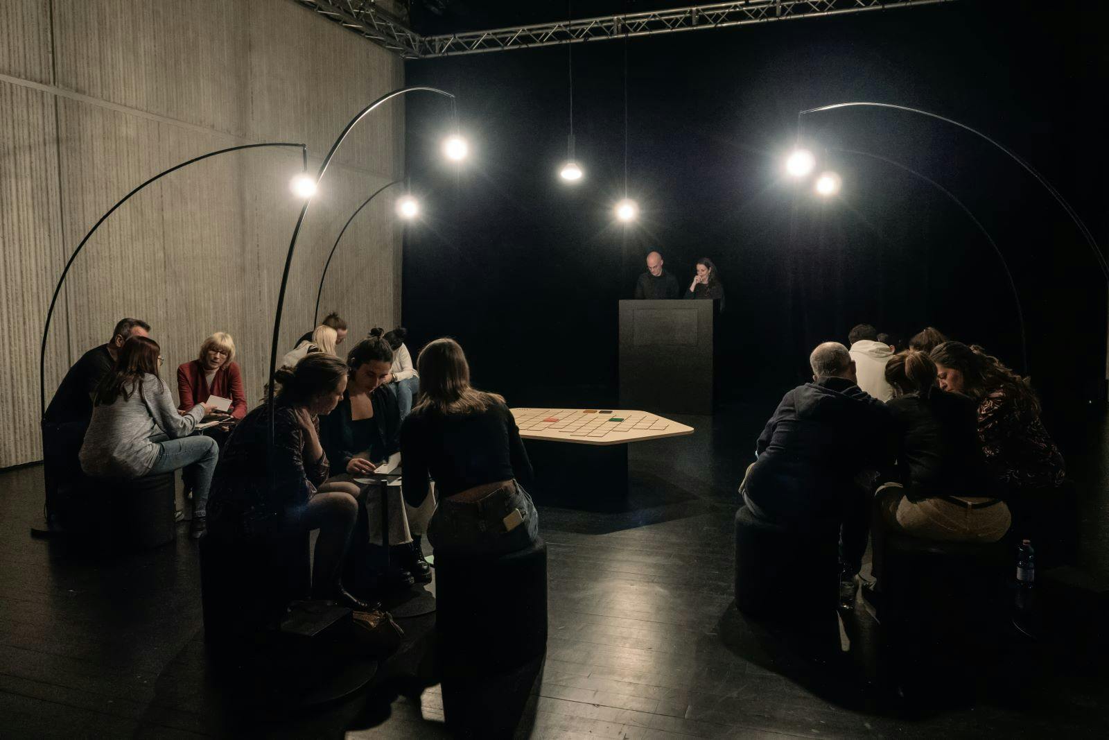 Eutopia stems from the desire to explore a different paradigm of “doing together” through a playful and multisensory approach. Marrying performance, installation and game design, the Swiss research duo Trickster-p questions old biological, ecological and anthropological models to transform the theatre into a big game board. Audience members are invited to a participatory experience the outcomes of which – always different – are the result of their own individual inputs. Collective action becomes the tool through which possible worlds are drawn, which centre around stories and visions where human and non-human entities are entangled to create a complex geography of multispecies landscapes in constant becoming.