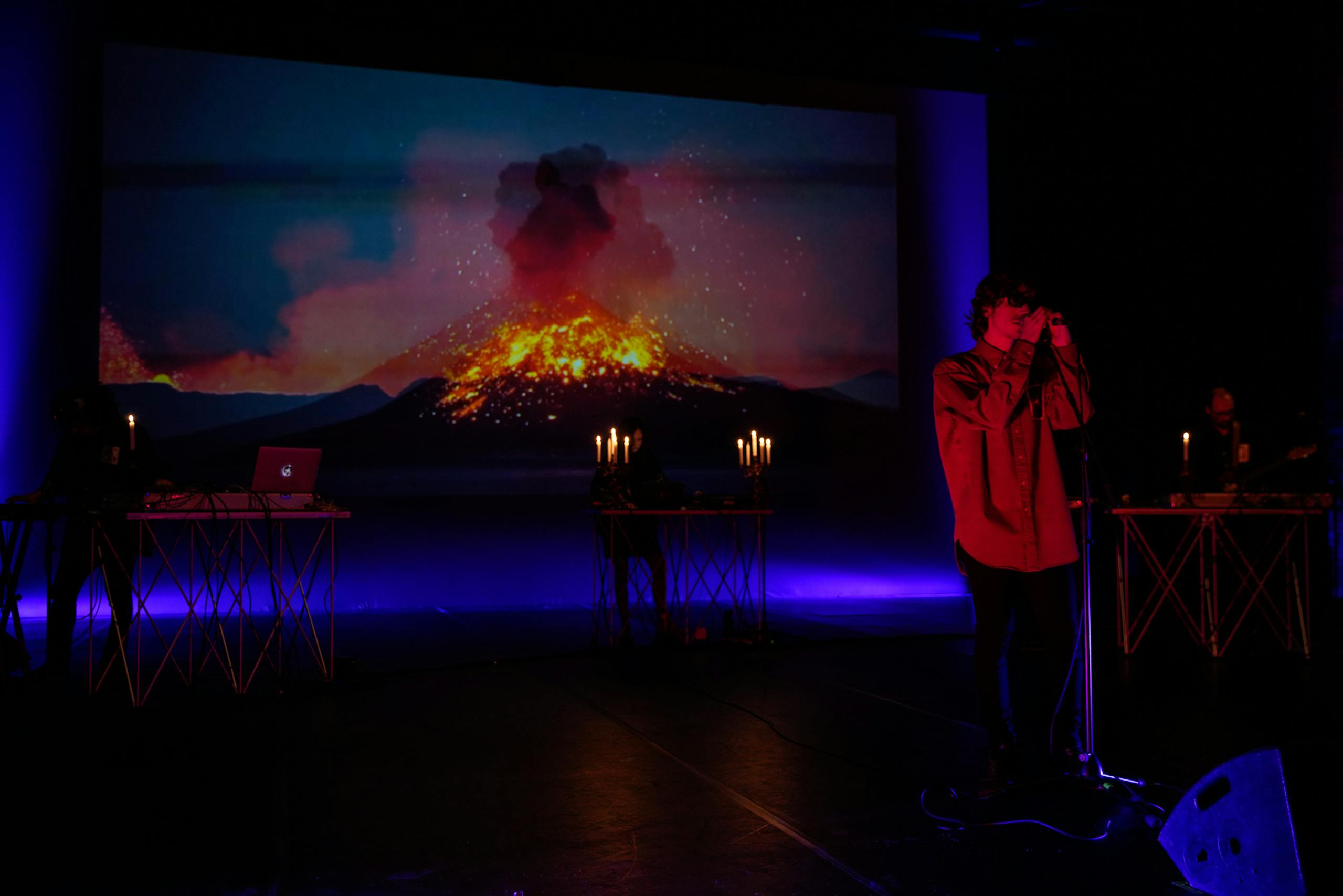 Romantic Disaster is a meeting of opposites, a romantic reflection on the destruction of Nature and on Nature’s power to destroy. The performance adopts the scenic format of a live-set, where the digital and the analogue coexist and interact. The dramaturgy revolves around poems by Keats, Byron and Shelley, on the topic of climate change. Although unaware of the cause of the lowering of global temperatures, provoked by the eruption of Mount Tambora in 1815, the three romantic poets wrote verses that express their growing concerns. The global cooling from two centuries ago intersects with the more recent global warming, gesturing to the civic awareness of the young activists of yesterday and of today. With urgency, poetry becomes song, music, battle cry. A Hymn to Beauty, which cannot die, and to the young people who wish to guard it.