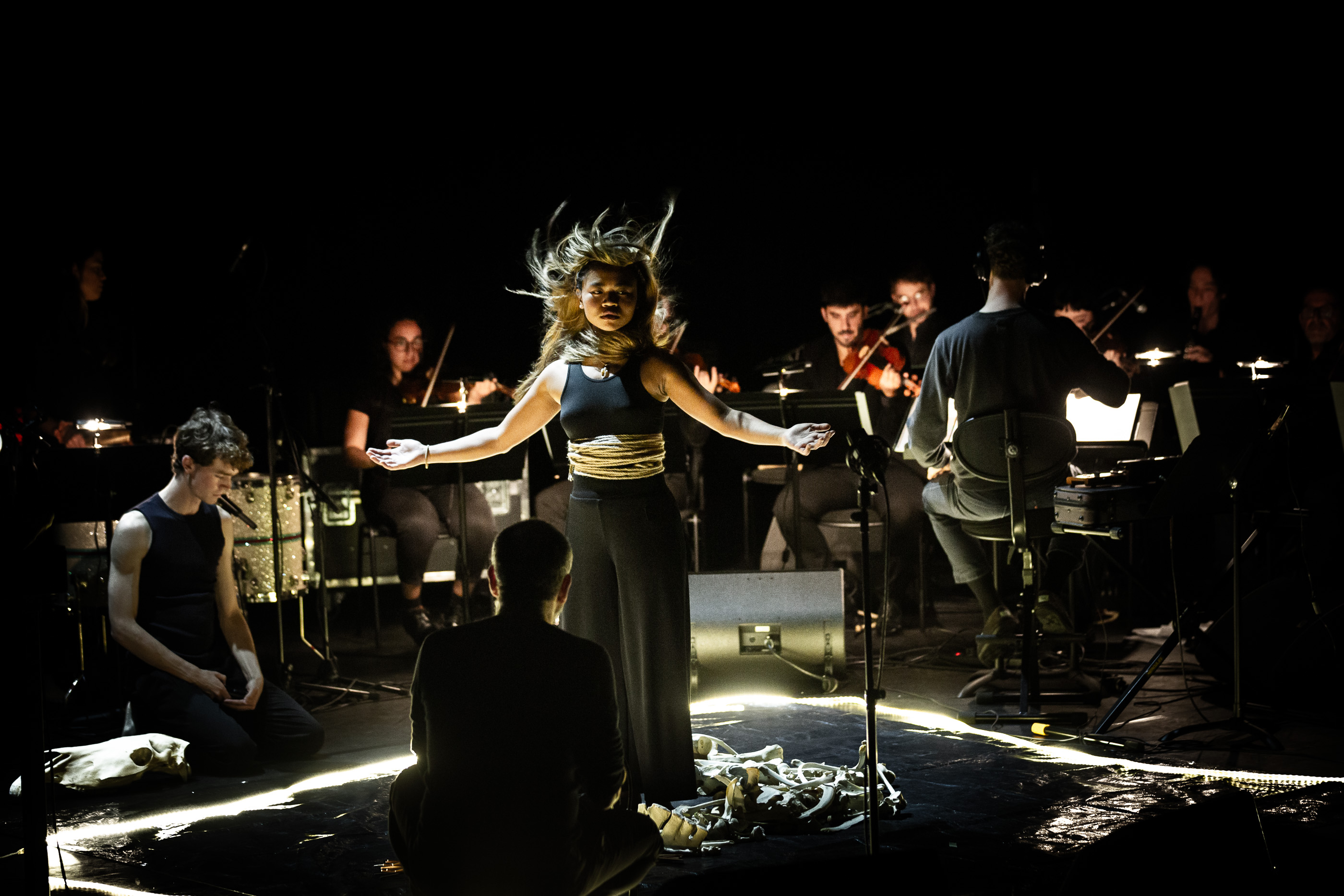 British artist, producer, composer and experimentalist Matthew Herbert presents in our theater The Horse, his latest composition for orchestra and electronics. The project, born from a collaboration with musical archaeologists, instrument makers, and the London Contemporary Orchestra, centers around the skeleton of a horse. One of the central narrative arcs through the album is its representation of the evolution of human music itself, opening in a compelling, primitive flurry of custom-made flutes from the horse’s thigh bones and bows crafted from ribs and horse hair, and culminating in a vast electro-acoustic dimension that transcends genres – a reflection of Herbert’s experience across diverse fields of contemporary music. The result is a vibrant collective performance which, for the Milan edition, realized in collaboration with UBI Unione Buddhista Italiana, features a 16-piece ensemble that includes young performers from the Bazzini Consort of Brescia. The Horse is an invitation to reflect on the interdependence between animals and humans – both as individuals and as species – and on the vital and symbolic connections with the animal world that have shaped the origins and evolution of music, art, and human consciousness.