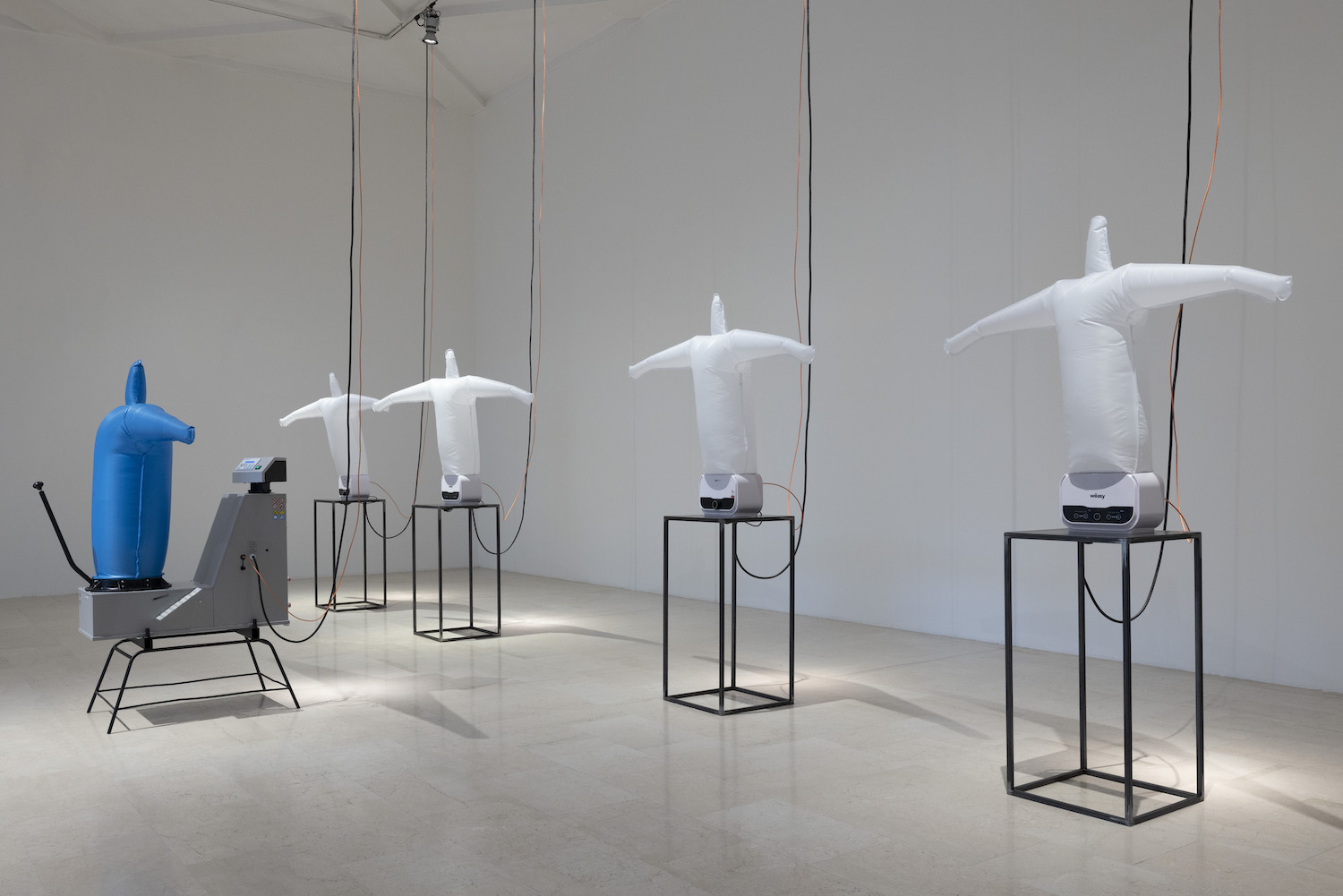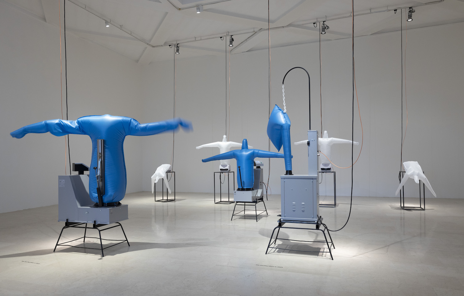 Una grande installazione, appositamente ideata e realizzata dall’artista per Triennale Milano, restituisce una riflessione sul rapporto tra la macchina e suoi creatori, tra umano e artificiale, e si fonda su un’accurata ricerca sui dispositivi di visione e la loro qualità tattile, sulle politiche del corpo come creatore di desiderio. Un coro di soggetti fabbricati compone una partitura di soffi d’aria, corpi invisibili reclamano presenza riuniti in una danza senza fine. Anna Franceschini crea un apparato ibrido e complesso, tra il balletto meccanico e la macchina celibe, una screenless animation che attinge, rivisitandoli, a plurimi immaginari cinematografici e riflette sulla contemporaneità come panorama di oggetti spettacolari.
