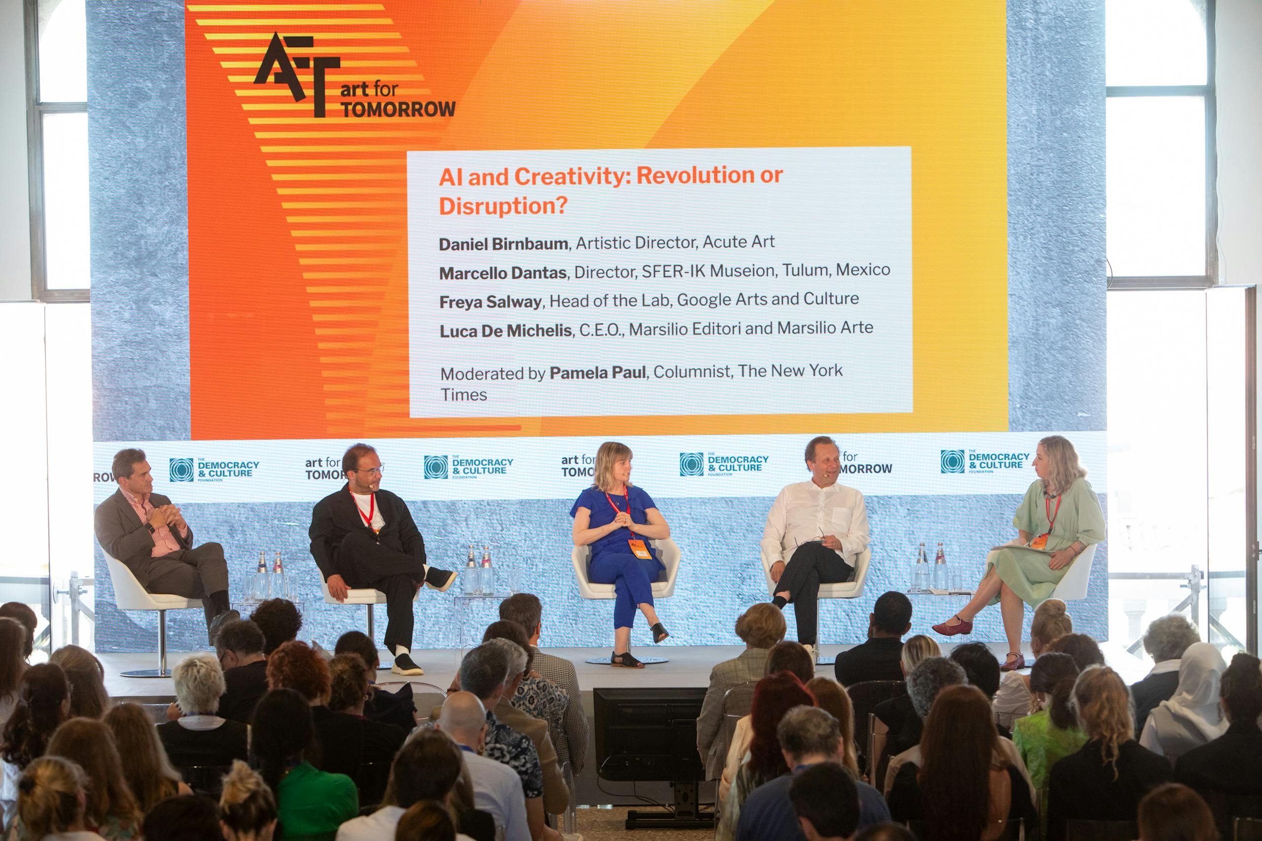 Presentata durante l'inaugurazione della 24a Esposizione Internazionale, la conferenza 2025 Art for Tomorrow, curata da Democracy & Culture Foundation e moderata da giornalisti senior del "New York Times", riunisce personalità di spicco per riflettere sul ruolo delle arti e dell'architettura nel plasmare i cambiamenti sociali e culturali. La conferenza si apre con i saluti istituzionali di Achilles Tsaltas, presidente della Democracy & Culture Foundation, e di Stefano Boeri, presidente di Triennale Milano, seguiti dal panel Going Deep: Community-Based Arts, in cui gli artisti e i curatori Alvaro Barrington, Alessandro Cinque e Courtney J. Martin discutono di pratiche artistiche profondamente radicate nei territori e nei bisogni delle comunità. Una conversazione con Theaster Gates, artista e professore dell'Università di Chicago e uno dei protagonisti della 24a Esposizione Internazionale, esplora il potenziale dell'arte come strumento di rigenerazione urbana e costruzione collettiva. La conferenza si conclude con Culture for Tomorrow: una discussione tra Sheikha Al Mayassa bint Hamad bin Khalifa Al Thani, presidente dei Musei del Qatar, Norman Foster, architetto e presidente della Norman Foster Foundation, e Stefano Boeri, che condividono la loro visione del futuro della cultura in un'epoca segnata da profonde trasformazioni globali.