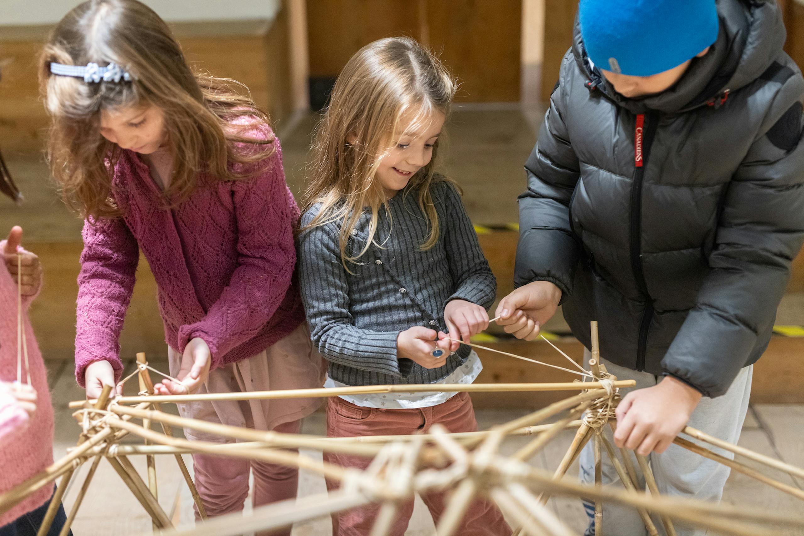 Un'attività che coinvolge famiglie e bambini nella costruzione di strutture e piccoli villaggi in bambù. La tecnica utilizzata, quella della cupola geodetica ideata da Richard Buckminster Fuller e portata da lui in Triennale in occasione della 10a Esposizione Internazionale nel 1954, permette di creare infinite composizioni di piccole abitazioni sostenibili, combinando bastoni di bambù in forme sempre nuove. Oltre al laboratorio, l'attività prevede la visita guidata della mostra su Elio Fiorucci.