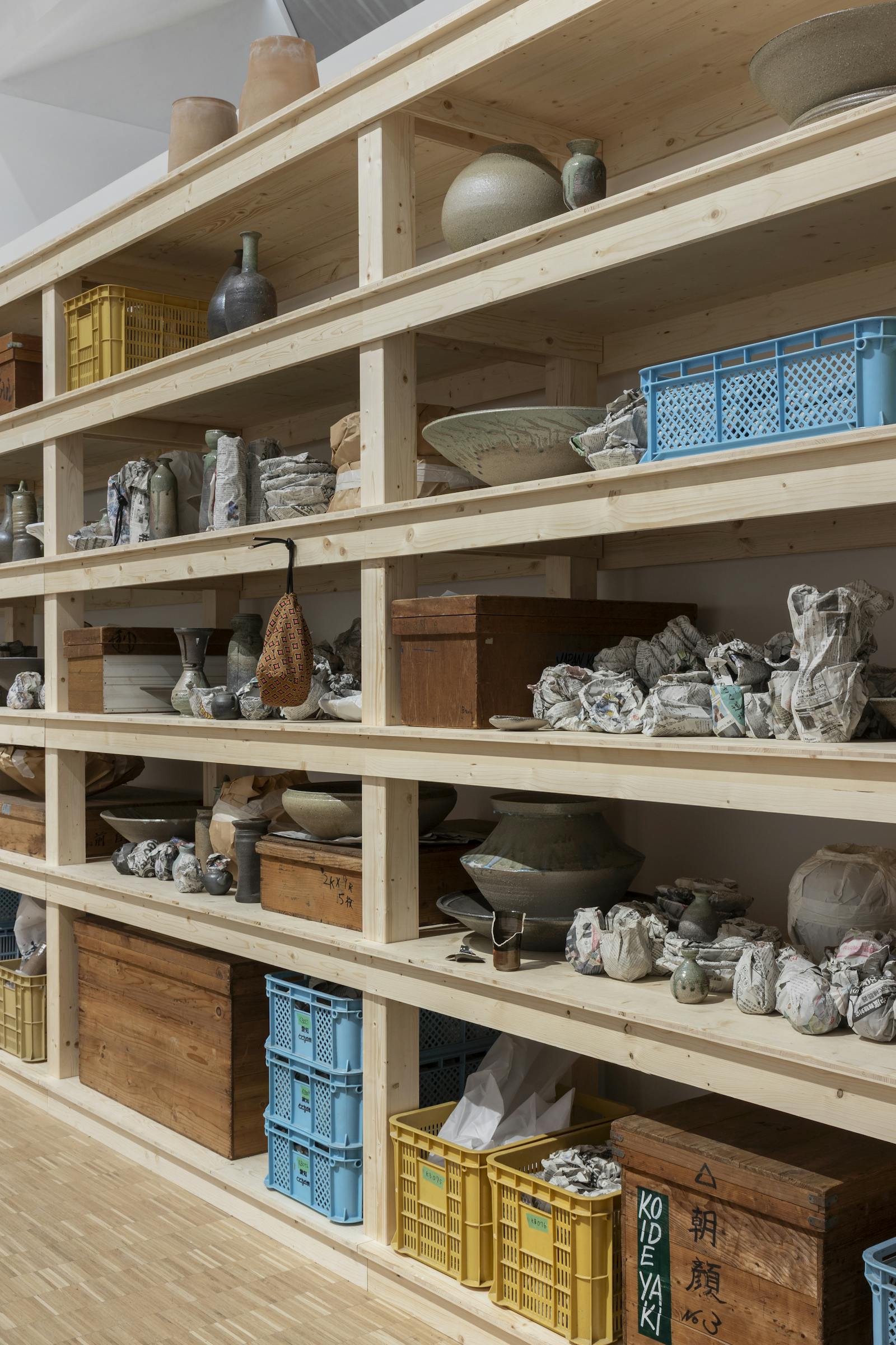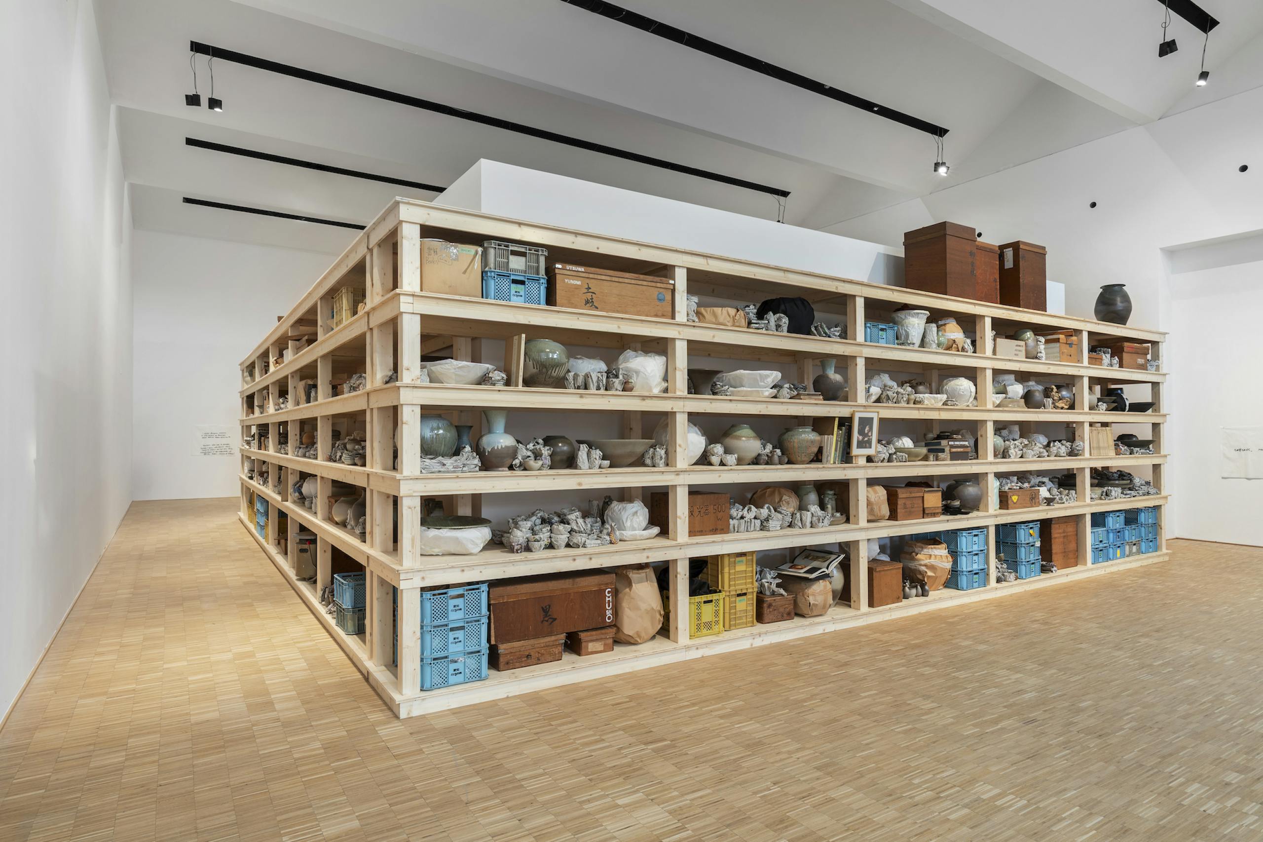 Clay Corpus esplora la forza, la dignità e l’umanità racchiuse negli oggetti d’uso quotidiano, attraverso la pratica di due maestri: il ceramista giapponese Yoshihiro Koide e il designer italiano Ettore Sottsass. Nel 2004, Theaster Gates ha studiato come ceramista a Tokoname, antica città giapponese un tempo rinomata per la produzione di tubature in ceramica. A distanza di vent’anni, impegnato nella salvaguardia delle tradizioni del Mingei e della ceramica Tokoname-yaki, Gates è divenuto il custode di circa 60.000 pezzi realizzati da Yoshihiro Koide. Avvolgendo Casa Lana di Sottsass con le opere di Koide, Gates rievoca l’architettura del sentiero Sanpomichi di Tokoname, una strada collinare che da generazioni collega gli atelier dei ceramisti e lungo la quale è consuetudine decorare le facciate degli edifici con le proprie creazioni, lasciandole esposte al tempo e agli agenti atmosferici. Lo studio della collezione Koide mette in luce come oggetti umili, in formato ridotto, possano essere elementi chiave nella storia del design. Per Gates, le ceramiche di Koide risuonano intimamente con le riflessioni di Sottsass sulla capacità degli artigiani orientali di conferire a materiali poveri come l’argilla un potere cosmico. Questo scambio culturale mediato tra Koide e Sottsass trasforma le tracce materiali delle loro pratiche in archivi di realizzazioni e in monumenti all’artigianato.