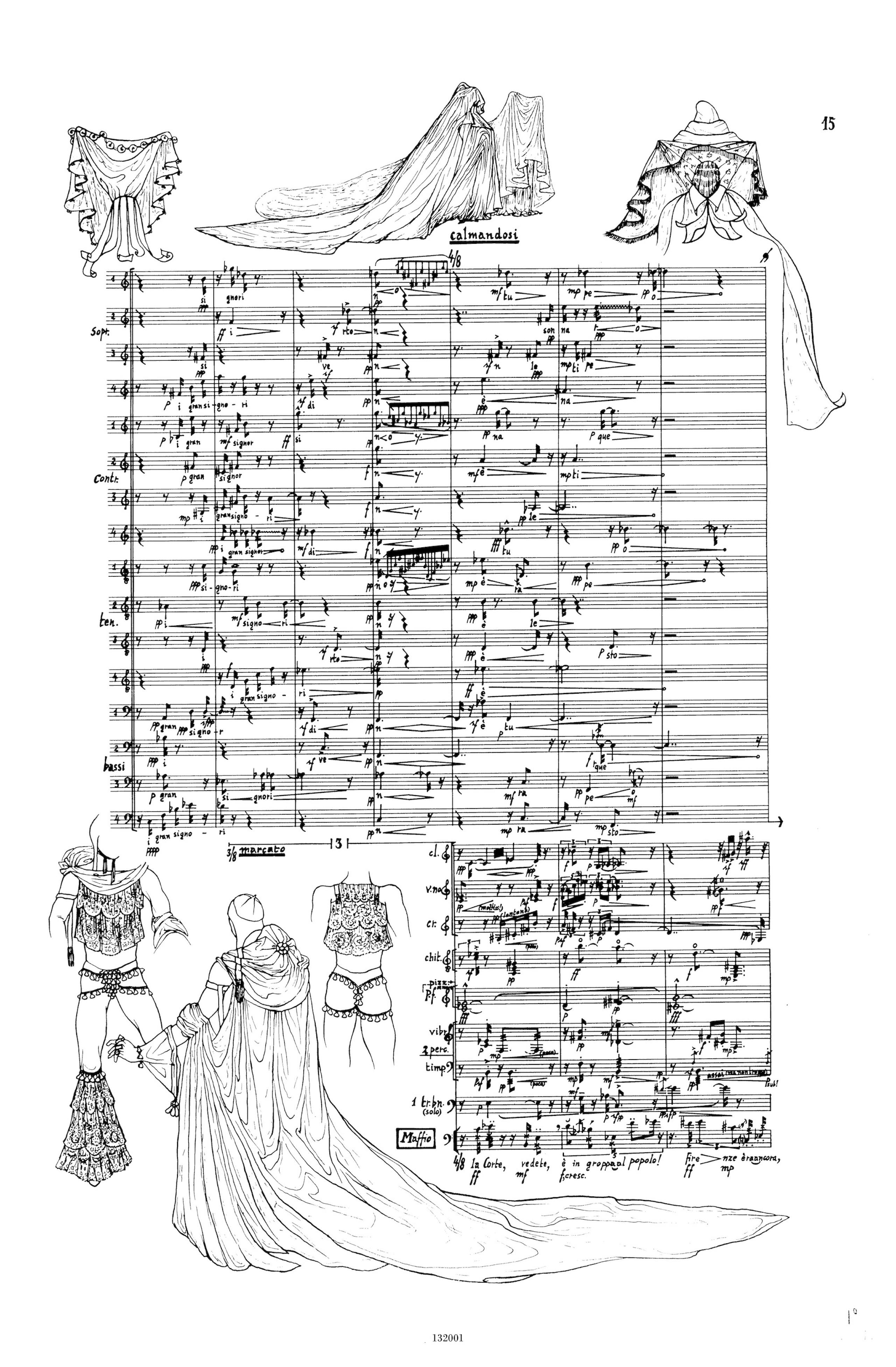 Pagine estratte dalla partitura a stampa dell’opera Lorenzaccio di Sylvano Bussotti, 1972, © Casa Ricordi