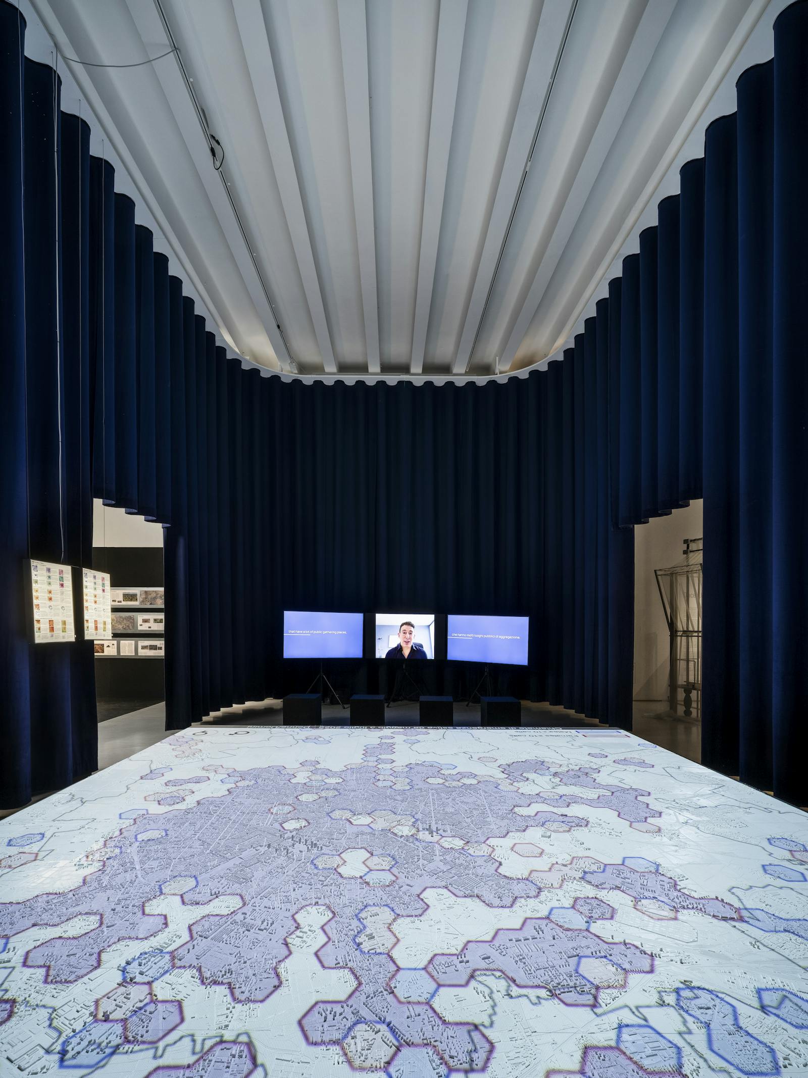 Modello fisico con proiezione dati – DAStU, Politecnico di Milano: Nicola Colaninno (progettazione, dati e mappe), Gabriele Stancato e Doruntina Zendeli (dati, mappe ed elaborazione proiezioni), Nilva K. Aramburu Guevara, Martina Bovo, Massimo Bricocoli, Lorenzo Caresana, Grazia Concilio, Alessandro Coppola, Marta Cordini, Mohamed Elgohary, Maryam Karimi, Giovanni Lanza, Cristiana Mattioli, Andrea Parma, Marco Peverini, Paola Pucci, Daniele Viarengo (dati e mappe), Eugenio Morello e Barbara E. A. Piga (supervisione) con il supporto di Viviana Giavarini e Fabio Manfredini (MAUD - Mapping & Urban Data Lab).