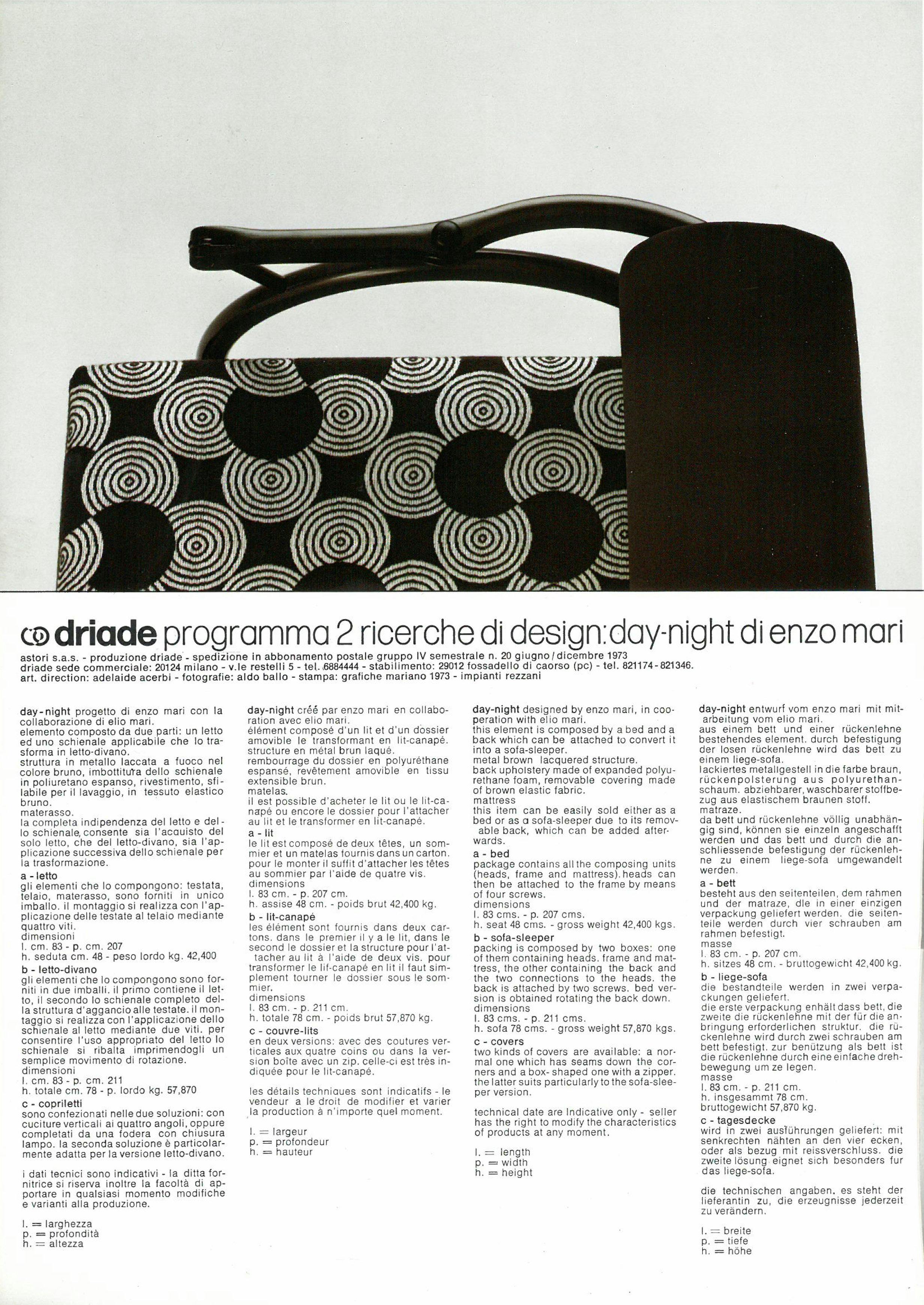 1971, Day Night, Enzo Mari con Elio Mari, Driade